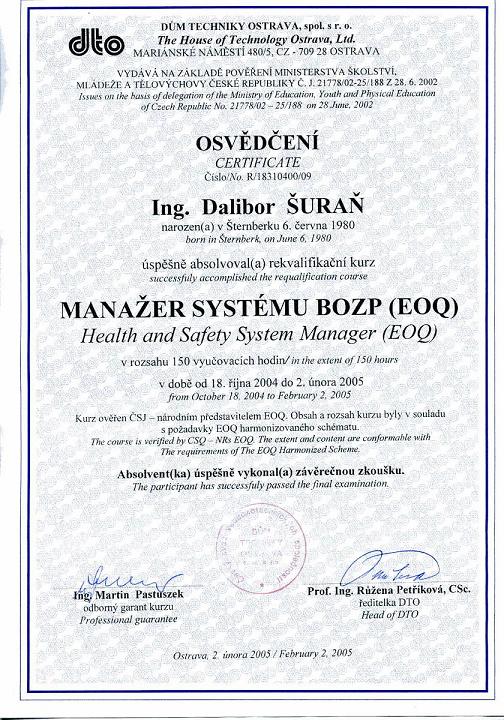 - Bezpečnost - BOZP, analýza rizik, kategorizace prací a požární ochrana.